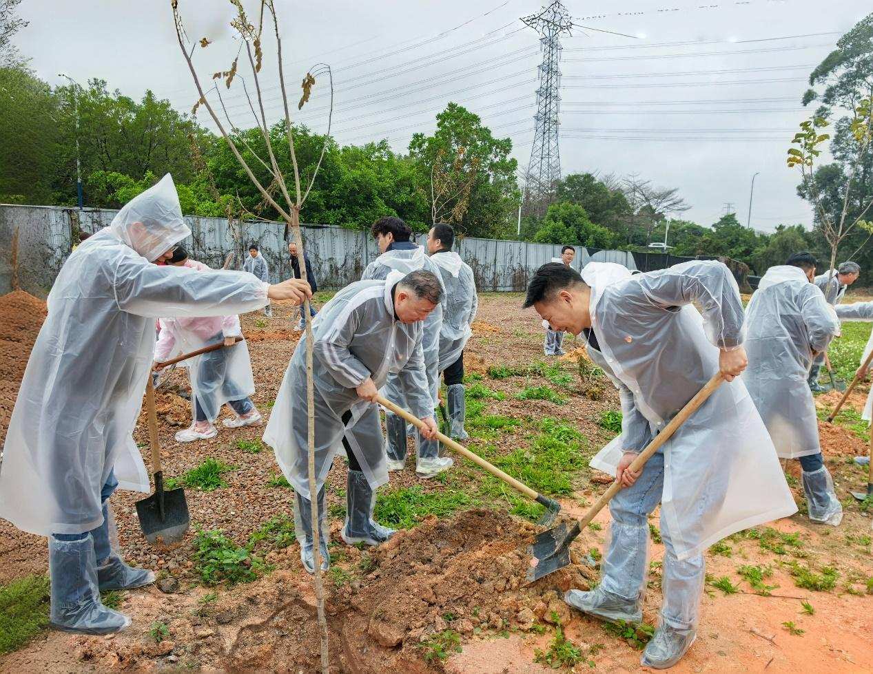 为践行绿色环保发展理念,志愿者们携手村民脚踩泥泞、手持铁锹,三人成组、五人成团,在雨中分工协作。经过一个上午的劳作,每名志愿者的鞋子和裤腿都沾满了泥浆,50株紫花风铃木却迎风挺立在“复绿”的场地中。此外,番禺区局还积极邀请村民与志愿者组成的“种植联盟”,采用“树苗认养-技术托管-成果共享”模式,既打造乡村景观廊道,更建立长效管护机制。